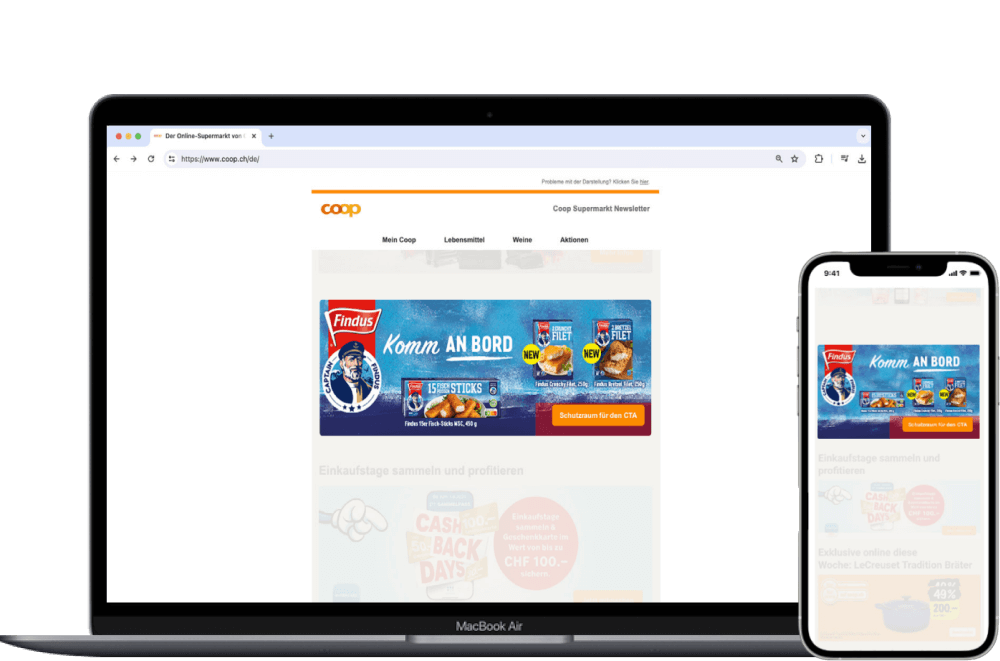 Banner im wöchentlichen Coop-Newsletter an total 2'000'000 Abonnent:innen mit Verlinkung auf Ihr Sortiment bei coop.ch