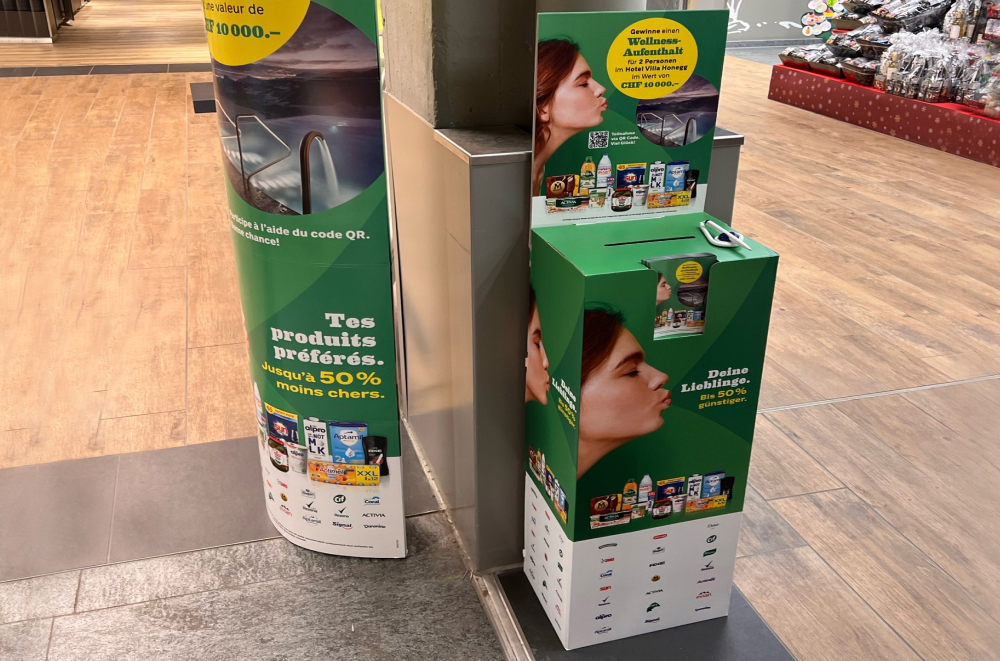 Platzierung beim zweiten Verkaufspunkt in 325 Coop-Verkaufsstellen ab B-Format in der Gesamtschweiz.